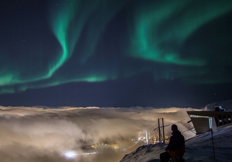 Tromsø, kaldet Nordens Paris og den største by omkring polarcirklen. Tag med på tur i denne livlige by med en dramatisk polarhistorie, som starter med en guidet bustur, en gåtur gennem centrum, til bygningen Full Steam - The gateway to The Arctic. Turen afsluttes med en toptur til Fjeldet med gondolliften og en betagende udsigt over byen.