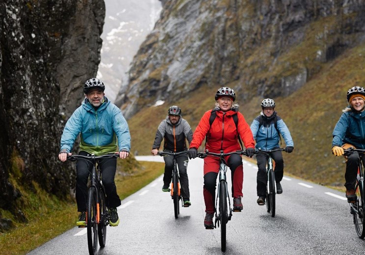 Tag med på cykeltur i de smukke fjelde ved Hjørundfjorden og Norangesdalen. 24 kilometers cykling på asfalterede veje på dronningeruten. Du cykler under majestætiske fjelde, gennem royale traditioner og brutale historier om voldsomme naturkræfter.
