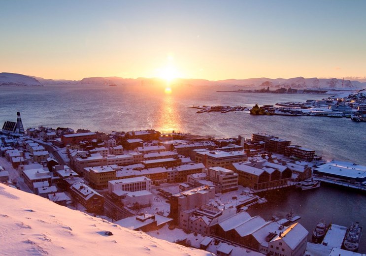 Bysightseeing i verdens nordligste by Hammerfest, grundlagt i 1789. Følg med gennem Hammerfest og hør historien om denne unikke by. Bussen kører os til Meridianstøtten, der står på UNESCO’s verdensarvsliste og op til byfjeldet, hvor du kan sikre dig gode feriefoto!