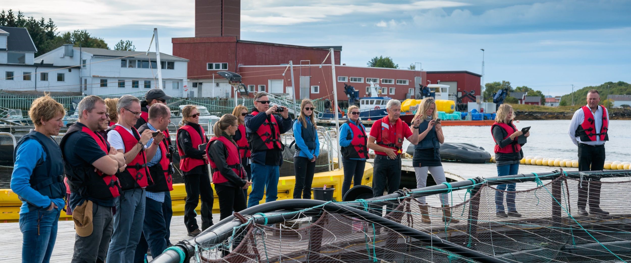 NIVEAU 1. Norge er en af verdens største eksportører af fisk og mad fra havet. Hvert år serveres 30 millioner middagstallerkener i over hundrede lande. Norges meget frugtbar kyst og det kolde, klare vand giver perfekte vækstbetingelser for laksen. Turen starter med bus fra Brønnøysund til laksefarmen, Inde i fjorden og ude ved kysten ligger de store udendørs bassiner, hvor laks i alle størrelser svømmer rundt. Dygtige guider viser os rundt i anlægget lige fra bassinerne til slagteriet. Her vil du lære om opdræt og miljøet omkring opdrætsanlæggene. Her kommer du til at møde laksen, se hvad den spiser, og hvordan den lever. Du kan selv deltage i fodringen og lære om moderne havbrug. Du kommer i kontrolrummet, hvor også undervandskamera og mange skærme er med til at sikre, at laksen trives og har det godt. Vi besøger en indendørs udstilling og selvfølgelig afsluttes turen med en smagsprøve af den norske delikatesse.