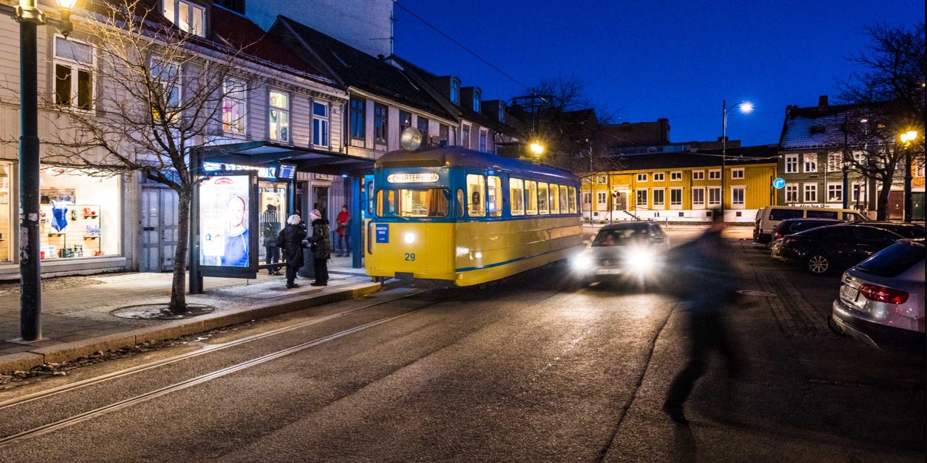 NIVEAU 1-2. Efter en kort bustur er vi fremme ved sporvognsstoppet i byens centrum. Herfra stiger vi om bord i en klassisk togvogn fra 1950'erne, på verdens nordligste sporvognslinje. Siden 1924 har Gråkallbanen været i drift, de 8,8 km smalle spor, tager os forbi farverige huse og resterne af Trondheims bymur frem til endestationen ved søen Lian. Før i tiden tog trikken indbyggerne med fra industribyen op til frisk luft og rekreation i naturen. Og dette gør den stadig. Linjen er populær både sommer som vinter og er udgangspunkt for ture i den den smukke natur. Bussen tager dig tilbage til skibet via en kort køretur gennem Trondheims centrum og holder et fotostop ved Norges nationale helligdom – Nidarosdomen. Historien om Nidarosdomen går over 1000 år tilbage og er målet for pilgrimsfærd i nord, på grund af sin beliggenhed på Sankt Olavs grav. Den storslåede vestlige facade og glasmaleriet vil med garanti overraske dig.