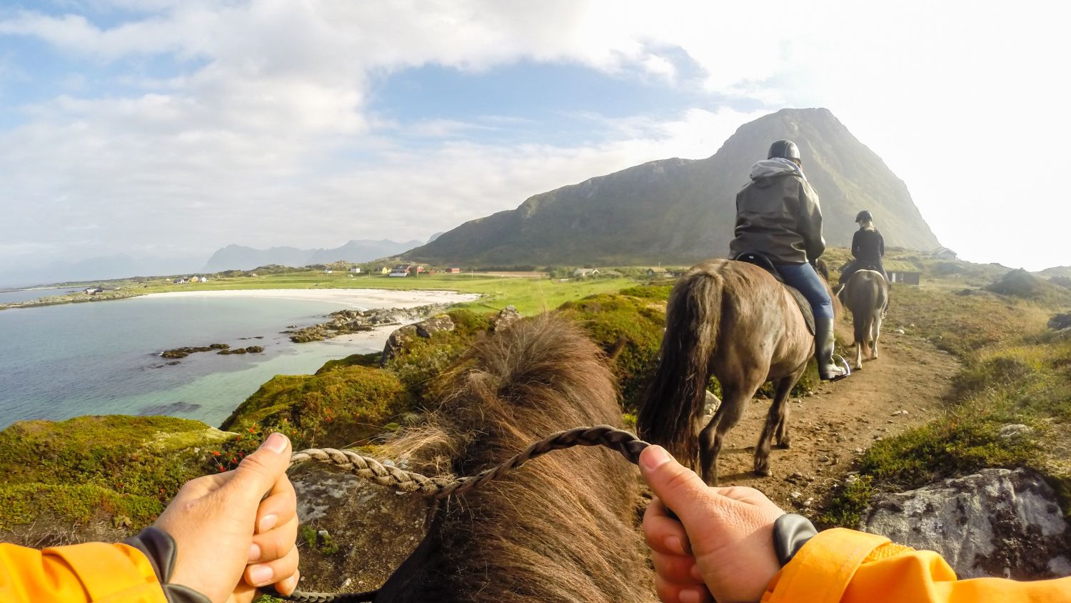 Turen byder på en flot naturoplevelse, hvor du rider på kridhvide sandstrande ved nordishavet, i kuperet, spændende terræn og blandt fortidsminder fra vikingetiden. Gimsøy er selve eventyrøen på Lofoten, og på Hov er flere kulturminder meget synlige i terrænet. Du oplever naturen og landskabet på nordsiden af Lofoten fra hesteryg, mens du også får mulighed for at prøve den behagelige gangart, tølt, som de islandske heste er kendte for. Turen og hesten er tilpasset både erfarne og nybegyndere efter færdigheder. Du lærer den hest at kende, som vi har valgt netop til dig. Den islandske hest er kendt for sit gode lune, og du vil i løbet af turen få en hest som ven. Efter rideturen tager vi dig med til Stamsund, hvor Havila venter på dig.