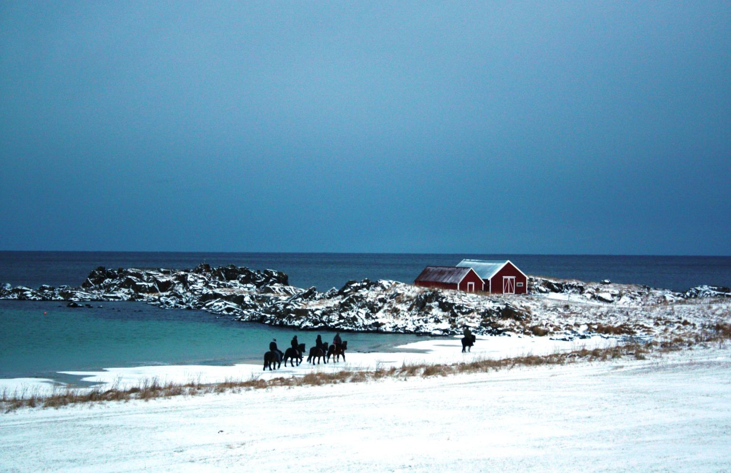 NIVEAU 3. Ridetur på islandsk hesteryg, gennem Lofotens betagende natur og i vikingernes fodspor. Vi hentes tidligt om aftenen på havnen i Svolvær og kører til Hov Hestegård i Gimsøy. De første mennesker som bosatte sig i Lofoten, slog sig ned på Gimsøy, som i vikingetiden var rammen for mest aktivitet. Vi rider over de samme marker og langs de samme hvide sandstrande som vikingerne gjorde. Om vinteren er det helt mørkt og man hørere havet skvulpe mod stranden, mens nordlyset måske viser sig på nattehimlen.