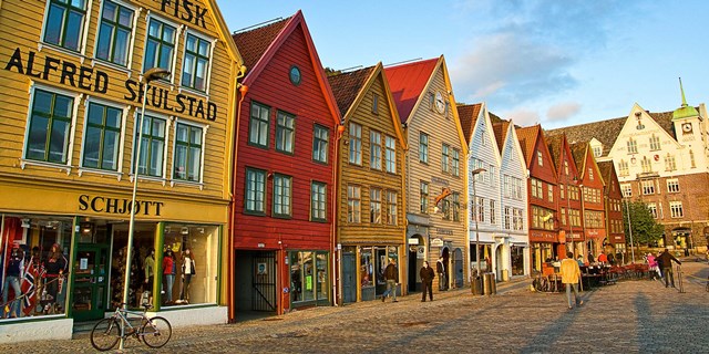 Ålesund - Bergen. I løbet af natten har skibet lagt til i Torvik, Måløy og Florø. Nu er de fleste fjorde lagt bag os og landskabet bliver igen mere frodigt når vi nærmer os Bergen. Inden Bergen skal vi nyde den marleriske Nordfjord ved Josteldalsbræen, vi passere Sognefjordens udmunding som står i skrap kontrast til det frugtbare landskab for enden. Den utrolige smukke Bergen by kommer stille til syne i horisonten. Nu slutter rejsen med Hurtigruten, og der skal tages afsked med venner, medpassagerer og besætningen.