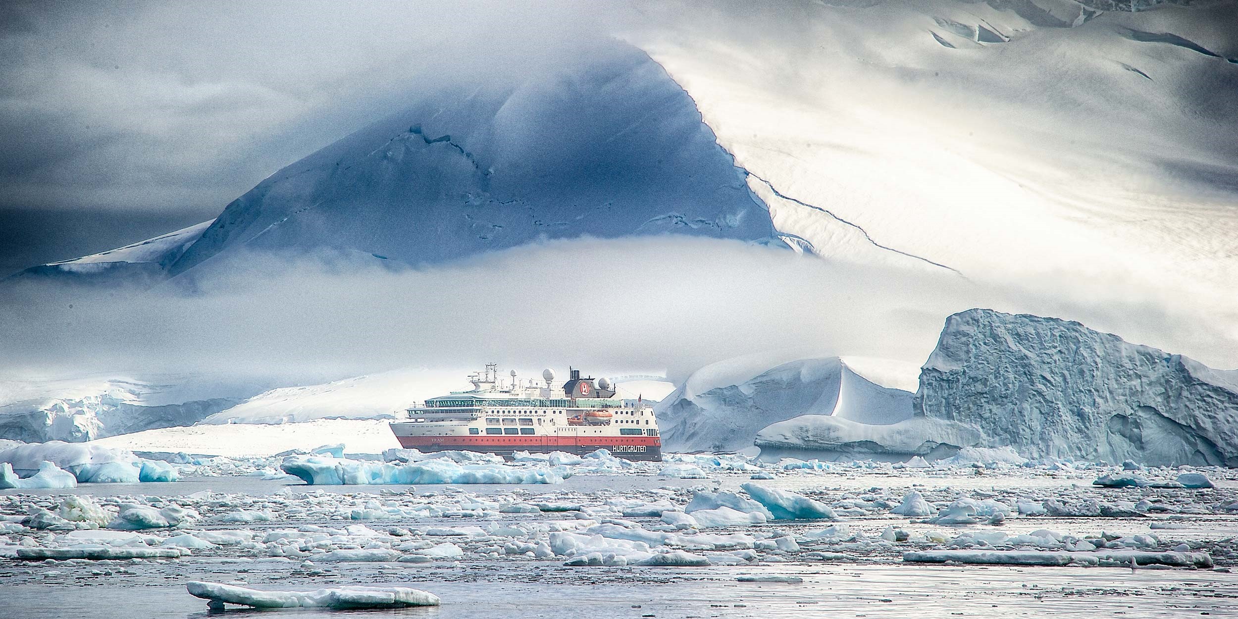 Ekspeditionskib. På MS Fram føler du det, som om du er på alle ekspeditionsskibenes moderskib. Og det er du på en made. Hun sejler til Svalbard, Antarktisk og Grønland. Skibet har den mest avancerede teknologi og er ekstremt velegnet til ekspeditionsrejser i polarområder. Her findes Bistro, restaurant, observations lounge, fitness rum, sauna og to jacuzzis. Der er 128 komfortable kahytter, hvoraf nogle er suiter.