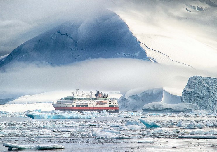 Ekspeditionskib. MS Roald Amundsen søsat2019. Gå ombord på næste generation af ekspeditionsskibe. En avanceret hybrid teknologi driver skibet næsten lydløst gennem den skrøbelige natur. Hun sejler i Antarktis, Falklandsøerne og i Chiles Fjorde. Skibet har den mest avancerede teknologi og er ekstremt velegnet til ekspeditionsrejser. Her findes 3 restauranter, interaktivt aktivitetscenter og udendørs pool-område. Fitness rum, sauna og jacuzzi. Alle kahytter er udvendig kahytter, de fleste med egen balkon.
