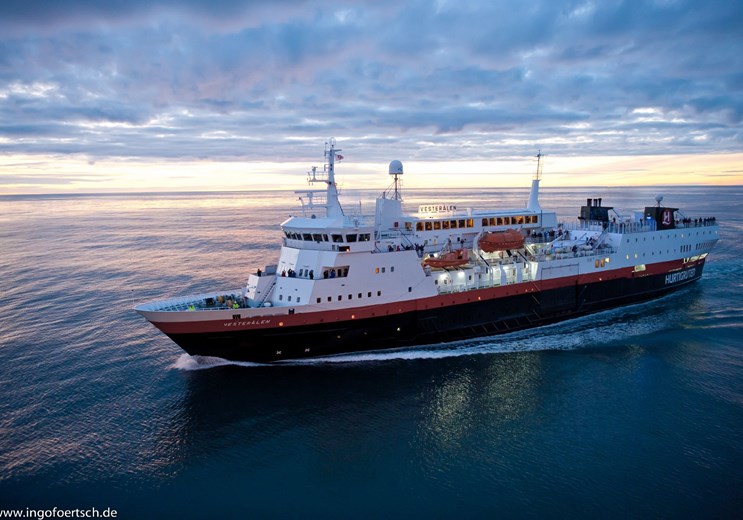 Arbejdende skib. MS Vesterålen, bygget i 1983, moderniseret i 1995/20. Oplev det mindre og mere intime skib som lyse og hyggelige saloner og fællesområder. Om bord er der Café restaurant, lille shop, internet og legerum, Panorama lounge og soldæk. Kahytterne er hyggelige og af god standard.