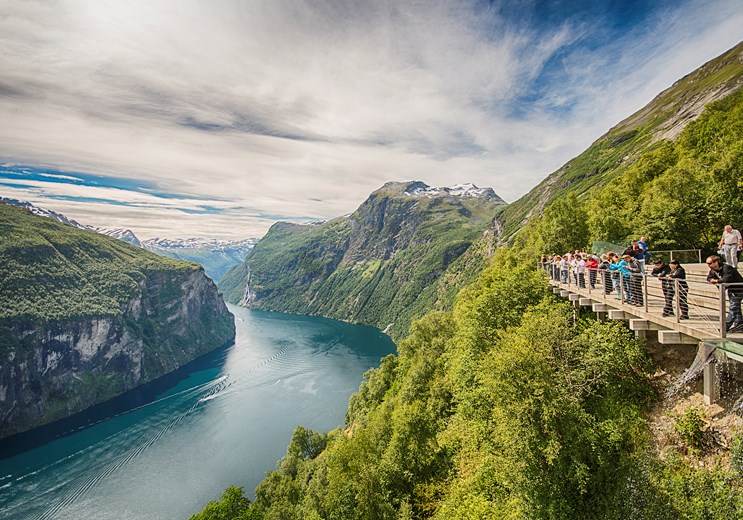 En hel dag med fjordene og landskabernes betagende skønhed. Fra Hjørundfjorden, ved landsbyen Urke, går tuen med bus gennem den smalle Norangsdalen. Herfra oplever vi Geirangerfjordens dramatiske og facinerende natur. Busturen fortsætter op ad Ørneveien, den stejleste vejstrækning op ad fjeldsiden fra Geiranger. På toppen kan Geiranger beundres og fotograferes fra oven. Efter en sejltur fra Eidsdal til Linge og fortsætter til landsbyen Stordal. Dagen slutter i Ålesund, som er mest kendt for sin smukke jugendstilarkitektur. Fra byens fjeld, Aksla, nyder vi den betagende udsigt, inden vi går om bord på skibet.