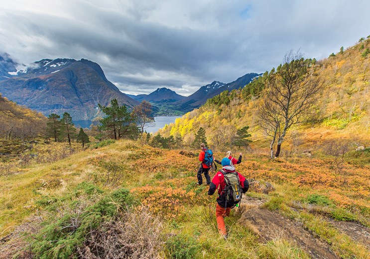 Panorama udsigter, frisk luft, og en larmende stilhed. En skøn og lidt udfordrende fjeldvandring ved den uberørte og storslåede Hjørundfjord. Nyd en tur gennem det storslåede landskab med fantastisk udsigt over fjorden.