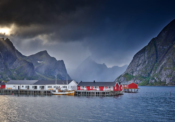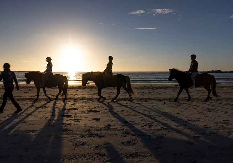 Ridetur på islandske heste gennem Lofotens storslåede natur. Turen er en stor naturoplevelse for både begyndere og erfarne ryttere. Vi hentes tidligt om aftenen på havnen i Svolvær og kører til Hov Hestegård i Gimsøy.
