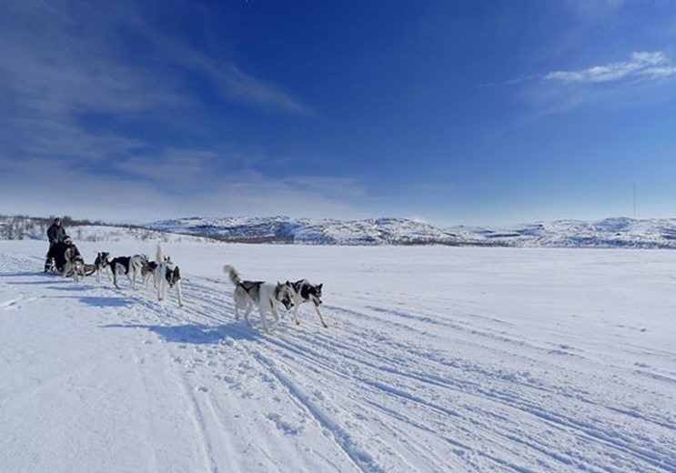 En vinterrejseoplevelse med en spændende husky hundeslædetur Nyd den pragtfulde udsigt over havet, fjeldene og de åbne sletter. Hvis du er heldig, ser du måske det magiske nordlys!