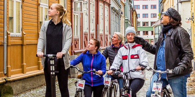 Trondheim har satset meget på at blive den mest cykelvenlige by i Norge. Byen har i dag over 5 km røde cykelbaner i gaderne i centrum. Hyggelig tur fra skibet og bl.a. gennem det historiske Bakklandet, hvor du skal prøver cykelliften Trampe – verdens eneste af sin slag.