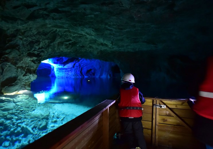 Bergtatt, betyder simpelthen bjergtaget. -Og dette bliver man på denne uforglemmelige tur på en oplyst, krystalklar sø. Kildevand kan drikkes direkte fra klippevæggen og frokosten indtages i et stort fjeldrum oplyst af stearinlys. Marmor- og kalkstensminen er stadig i drift og vi får indsigt i minen og minedriften.