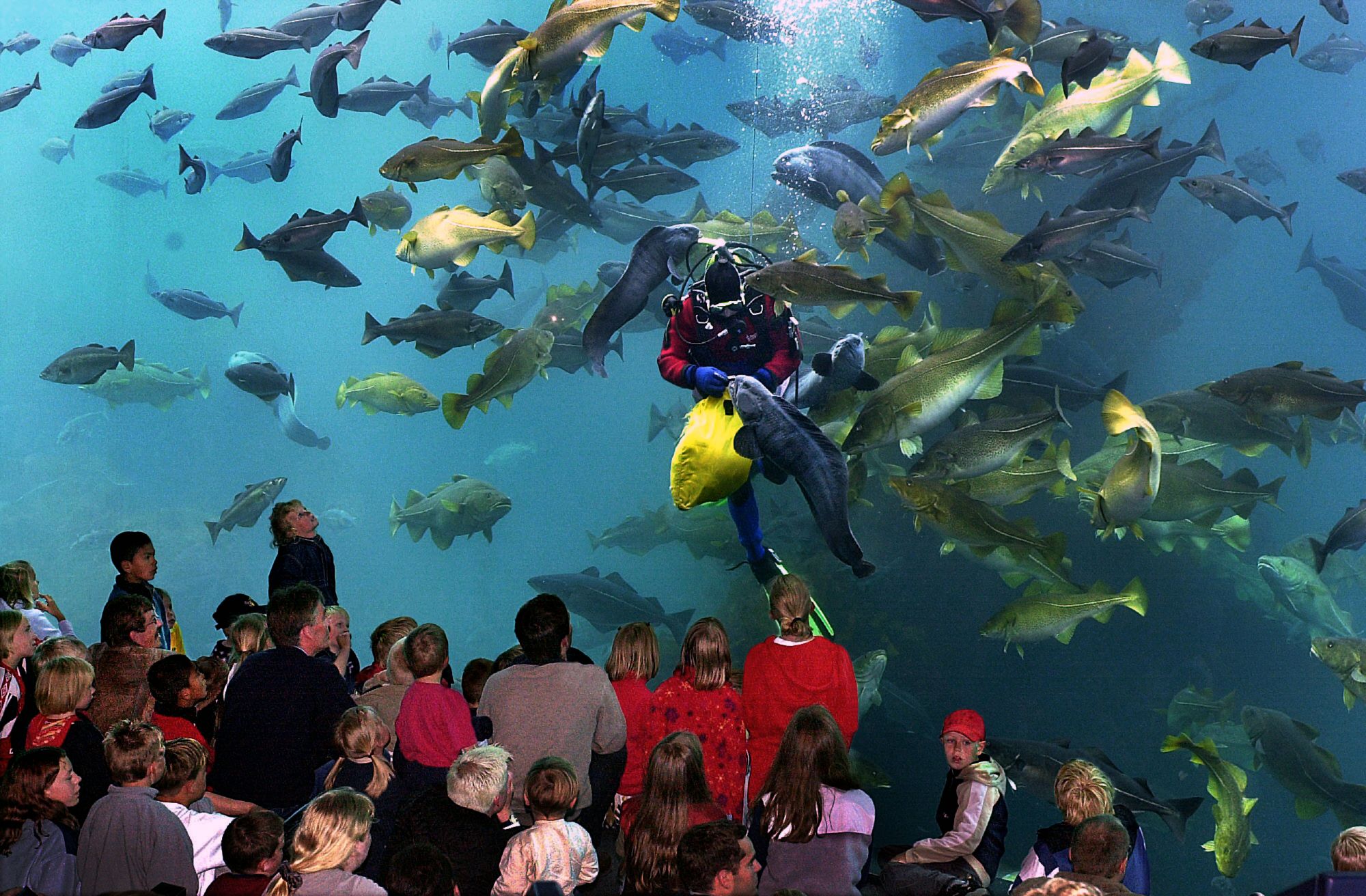 Du får mulighed for se fiskene blive håndfodret af dykkerne og et besøg i udendørsbassinet hvor du kan se pingvinerne, prøve at fodre havkat og får muligheden for at smage en varm havkatkage