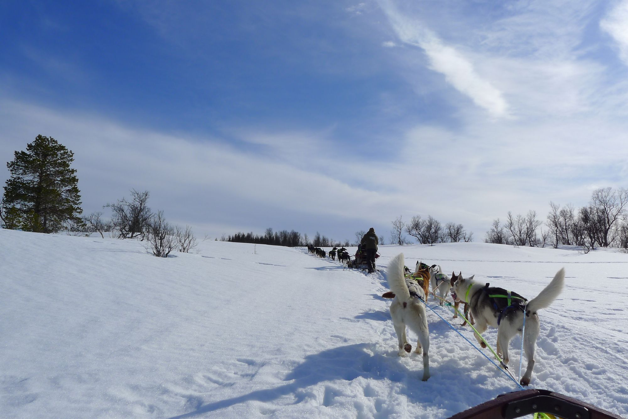 NIVEAU 3. En vinterrejseoplevelse med en spændende husky hundeslædetur! Turen begynder med en køretur til øen Kvaløya vi sætter os i slæderne og lader huskyerne trække os over det frosne landskab. Nyd den pragtfulde udsigt over havet, fjeldene og de åbne sletter. Hvis du er heldig, ser du det magiske nordlys. Du inviteres i et traditionelt samisk lavvo-telt, hvor der venter dig åben ild og lidt varmt at drikke.