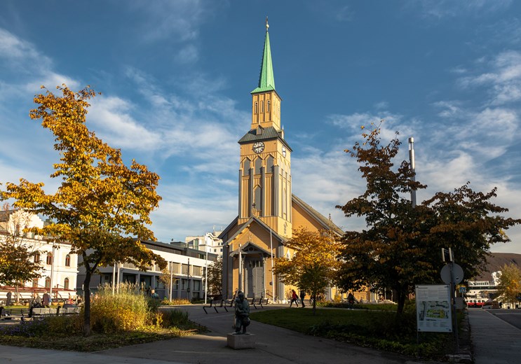 Den smukkeste måde at opleve Domkirken i Tromsø på, er at nyde denne gamle kirke fra 1861 bygget 100% i træ og den meget smukke koncert der spilles her ved midnat.