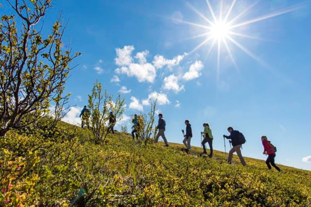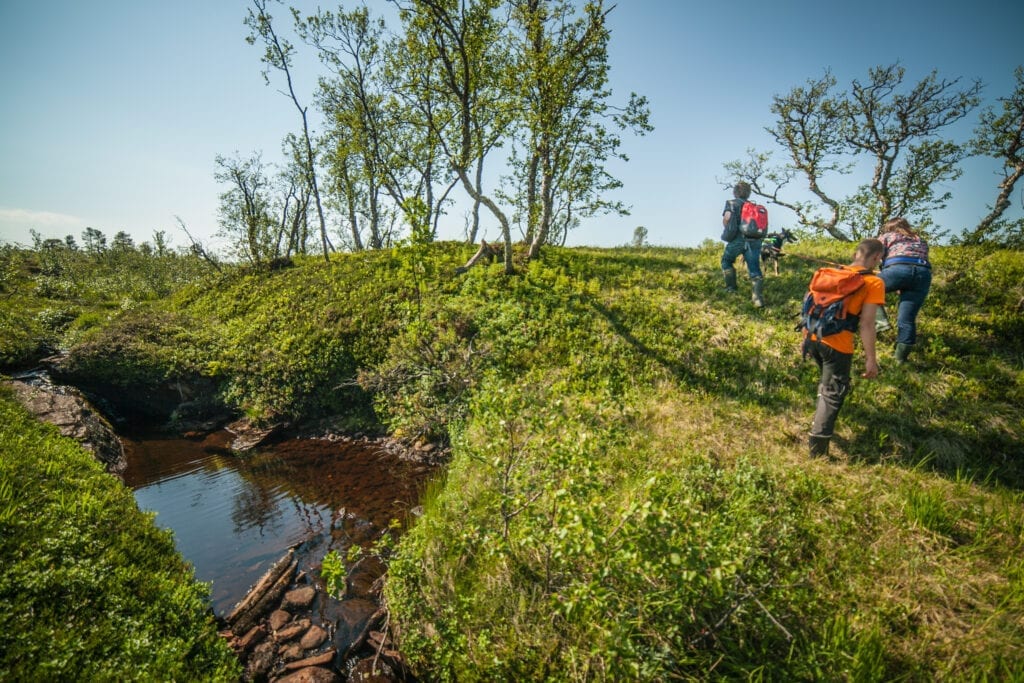 NIVEAU 1. Vi tager til Tromsø vildmarkscenter på Kvaløya. Her møder du mere end 250 huskyer og hvalpe, hører om hundeslædekørsel og verdens længste hundeslædevæddeløb, Iditarod, som præsenteres med billeder og film. Det er vigtigt at have godt fodtøj på, hvis du vil med vildmarkscenterets guide ud og kigge på plante- og dyrelivet omkring centeret, inden vi mødes i det traditionelle samiske lavvo-telt, hvor vi får lidt varmt at drikke og et stykke kage.