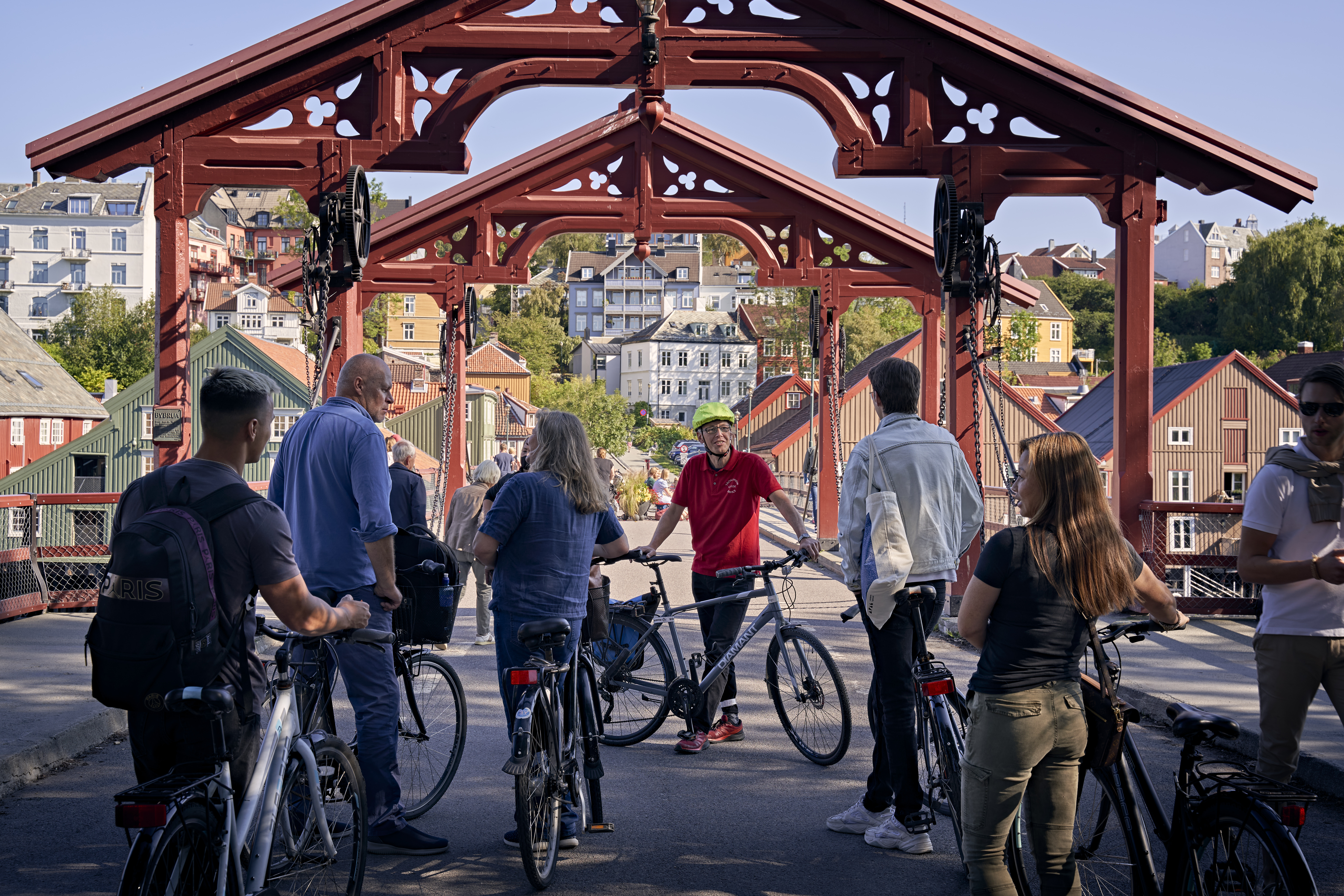 NIVEAU 3. Trondheim har satset meget på at blive den mest cykelvenlige by i Norge. Byen har i dag over 5 km røde cykelbaner i gaderne i centrum. Turen går fra skibet og gennem det historiske Bakklandet, hvor du skal prøver cykelliften Trampe – verdens eneste af sin slag. Videre går turen langs bryggerækkerne med udsigt mod Nidarosdomen og langs Nidelven til Ila, over den nye cykelbro og langs med fjorden tilbage til skibet. Cykelturen langs fjorden er i smukke omgivelser, blandt andet med udsigt til øen Munkholmen. Turen passer for alle.