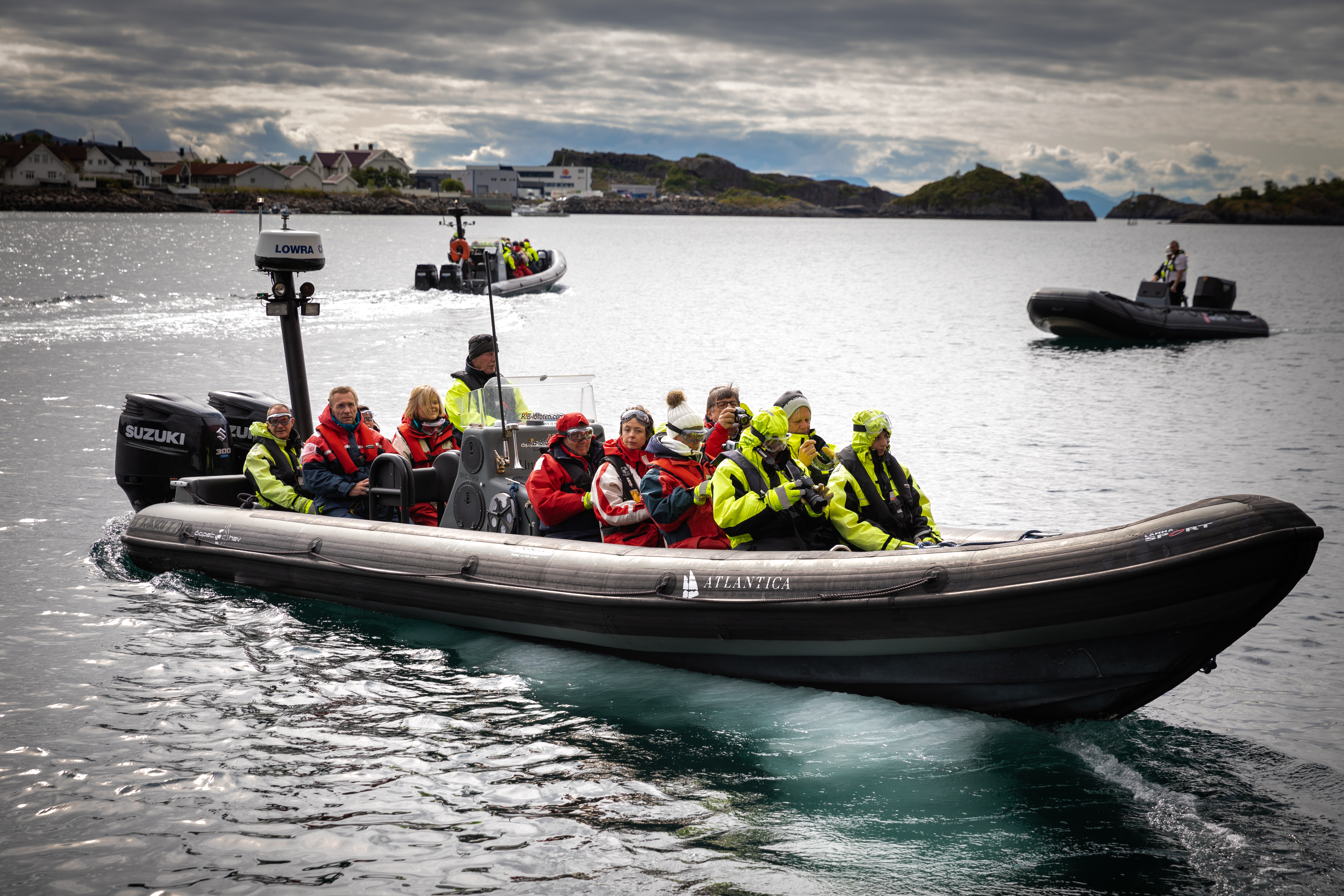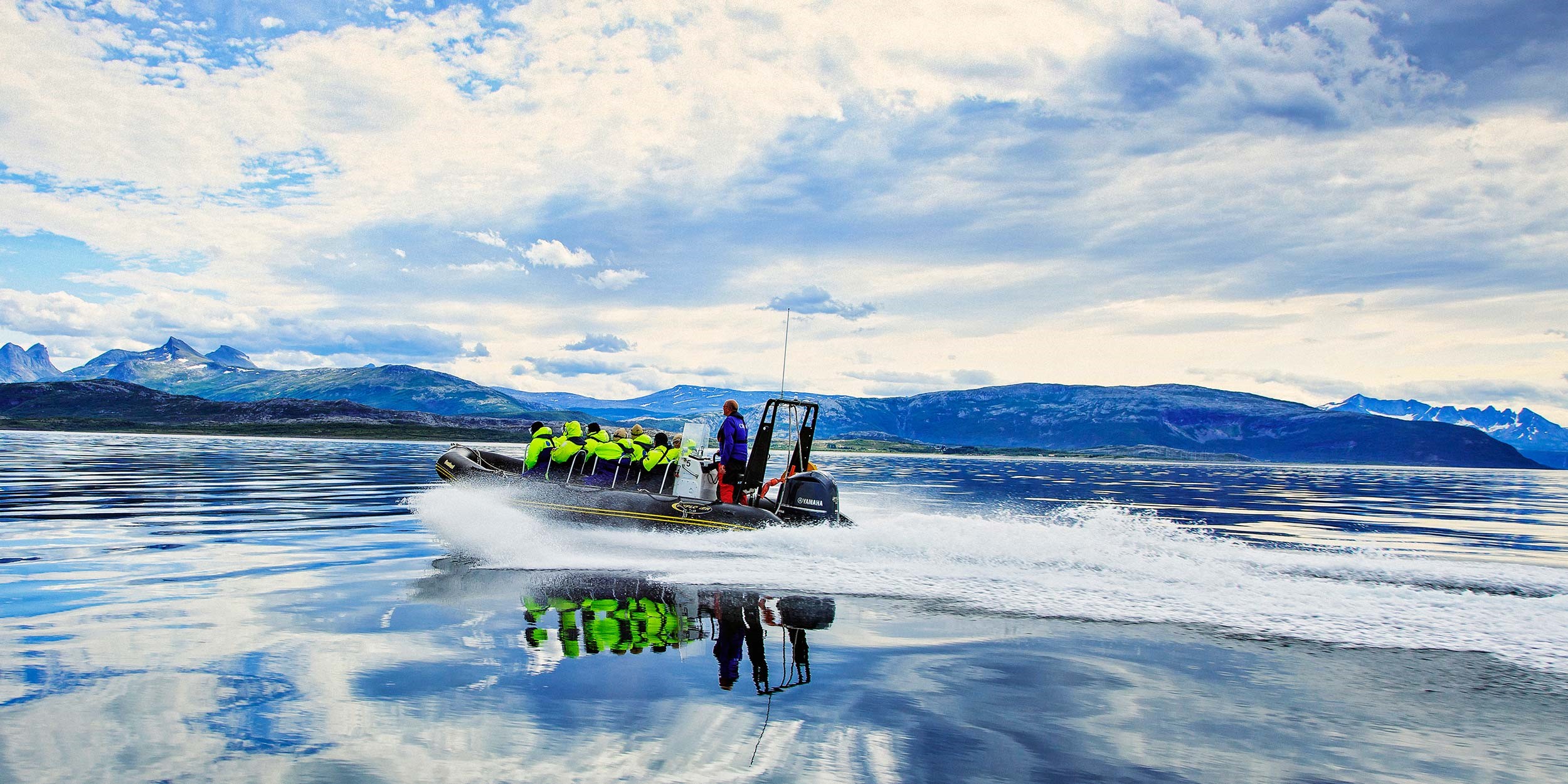 NIVEAU 3. Tag med ud på en fartfyldt udflugt med RIB både og ind i den fantastiske Lofoten-øgruppe. Den erfarne skipper tager os med til en smuk lagune med hvide sandstrande omgivet af små øer og skær. Her er der gode chancer for at se Europas største rovfugl, havørnen, helt tæt på. Efter et kort fotostop fortsætter vi til fiskerlandsbyen Skrova. Her får du en lille snack og hører fortællinger om landsbyen, der er kendt for at eksportere laks til hele verden. Når vi vender tilbage til havnen i Svolvær byder Statuen ”fiskerkonen” os velkommen, og vi går om bord på Hurtigruten igen.
