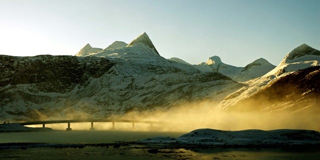 Fra Harstad til Sortland. Se verdens nordligste middelalderkirke, der er et af Norges vigtigste kulturminder. Hinnøya - Norges største ø - med udsigt over smukke fjorde. Gullesfjord krydses med færge og vi fortsætter derefter langs Sigerfjord til Sortland. Dette er en stor oplevelse på alle årstider!