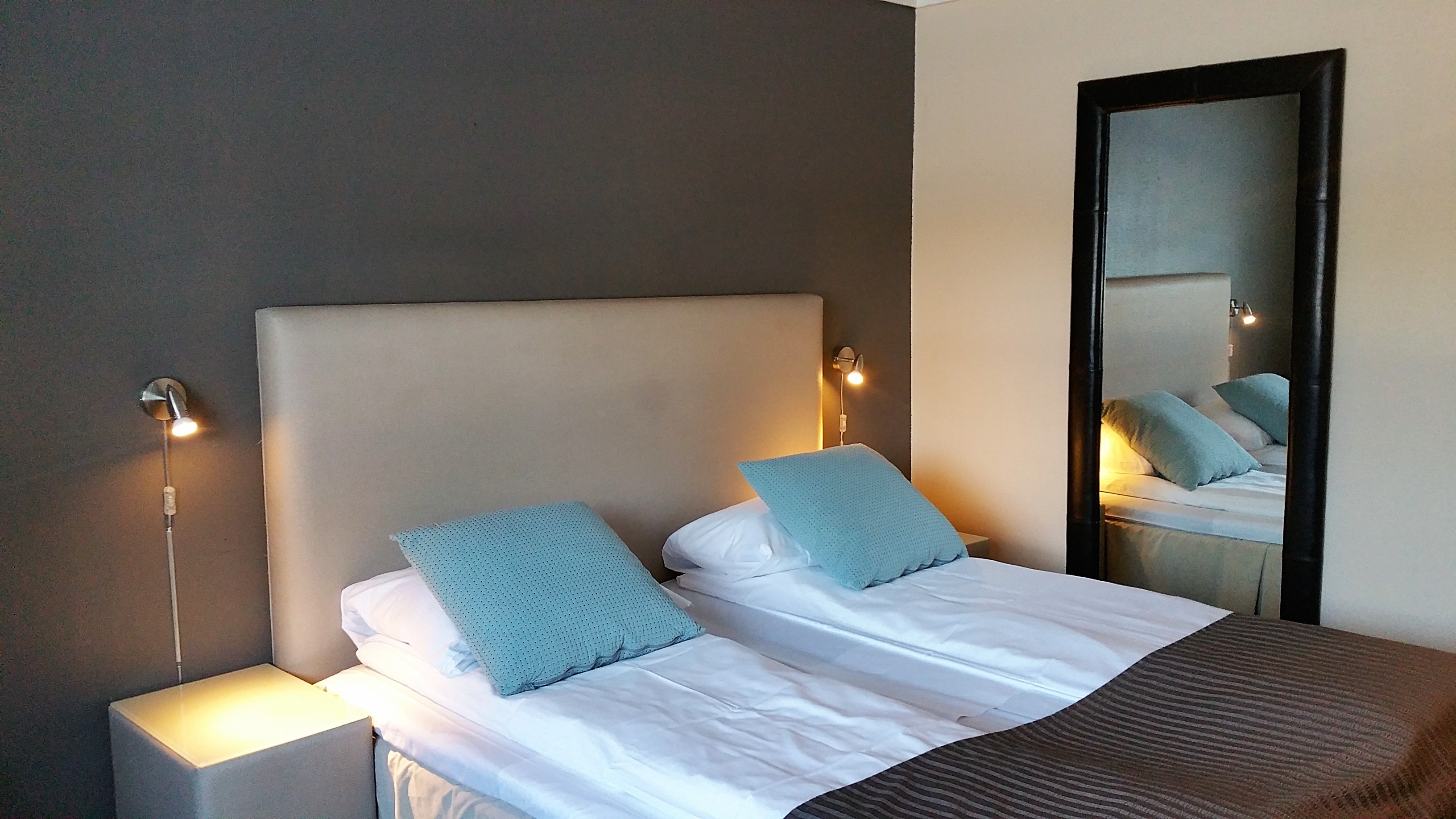 De 36 værelser, er nyistandsatte og har TV, nye bad og dejlige senge. Værelserne er meget forskellige men ens for alle, at indretning er inspireret af lokale traditionsrige rødder, med lune farver i blå, beige og brune toner. Nyd en god nats søvn i enkeltværelse, dobbeltværelse eller familieværelser