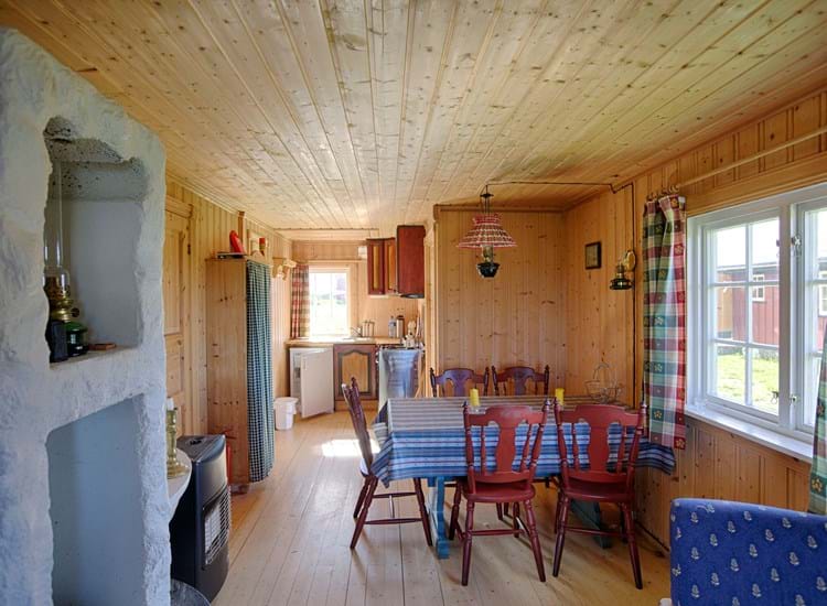 Hytte med solcellepaneler. Køkkendeling: Gaskomfur, gas inkluderet, køleskab, indlagt vand om sommeren. Opholdsstue med spisebord, sofagruppe, pejseovn, TV (norske kanaler). Brænde inkl.