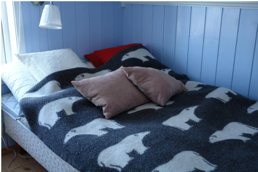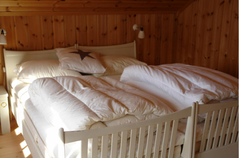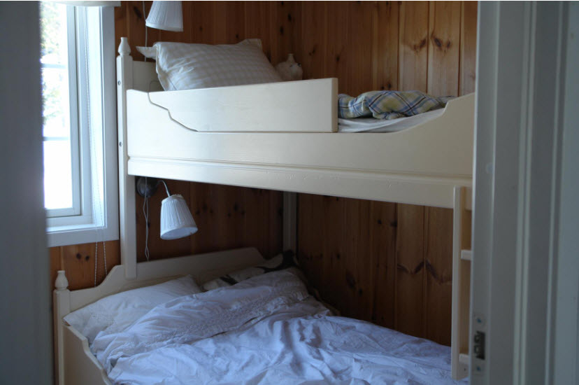 Soverum: Soverum 1+2+3: 1 dobbeltseng. Soverum 4: 1 familiekøjeseng. Soverum 5: 1 skibsbriks.