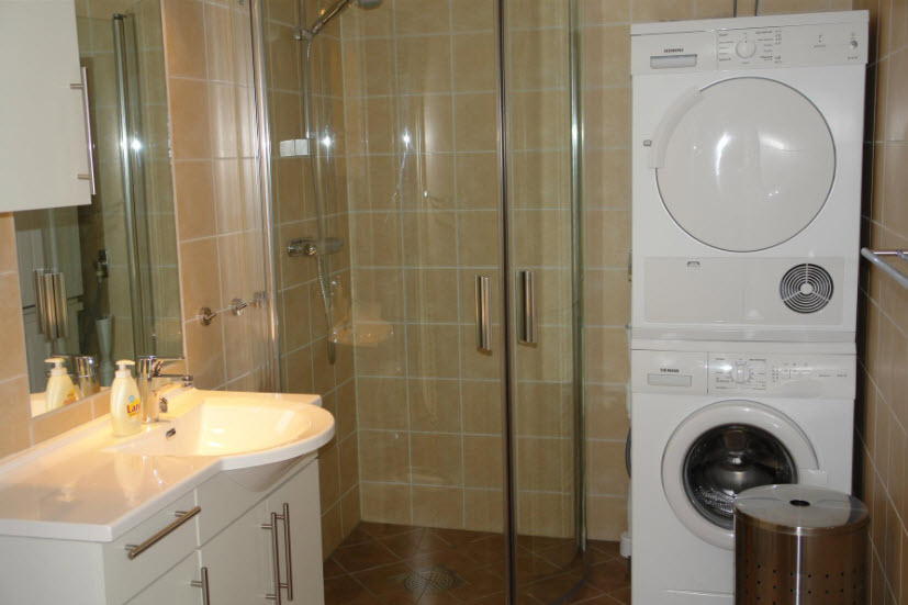 2 badeværelser med brus og toilet. Sauna, vaskemaskine og tørretumbler.