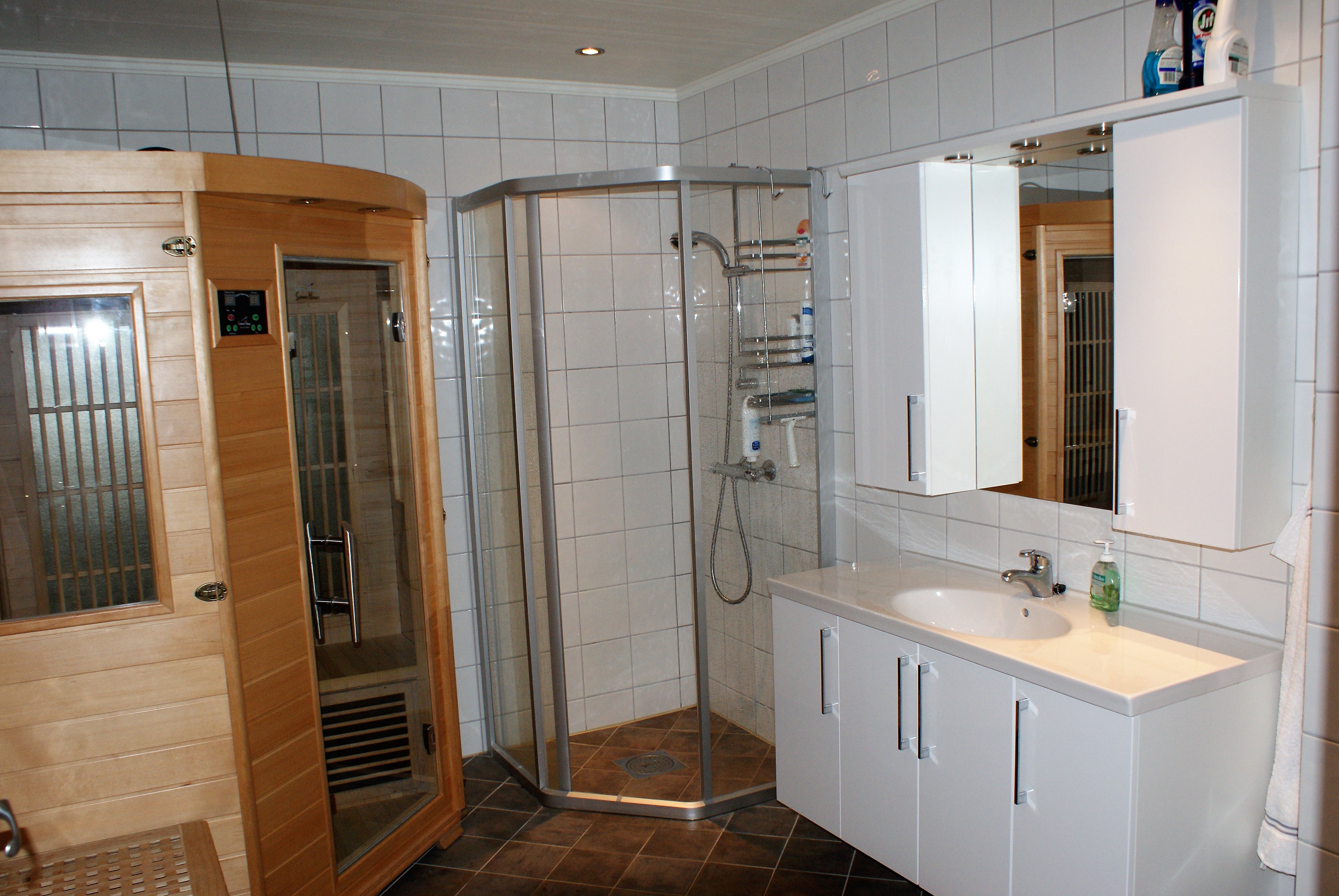 1 badeværelse med brus og toilet. Vaskemaskine og tørretumbler.
