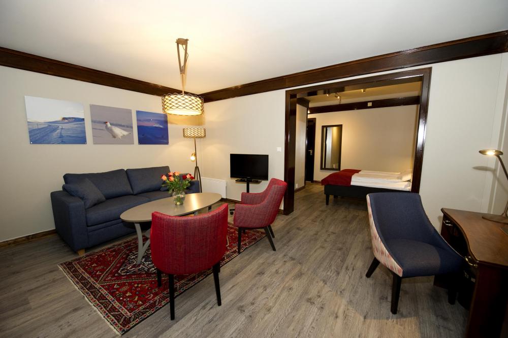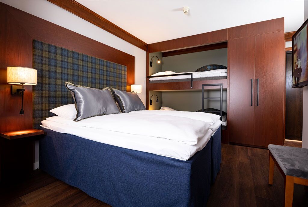 36 juniorsuiter/familieværelser 32m2 med plads til 2-5 pers. dobbeltseng + sovesofa med sofagruppe.