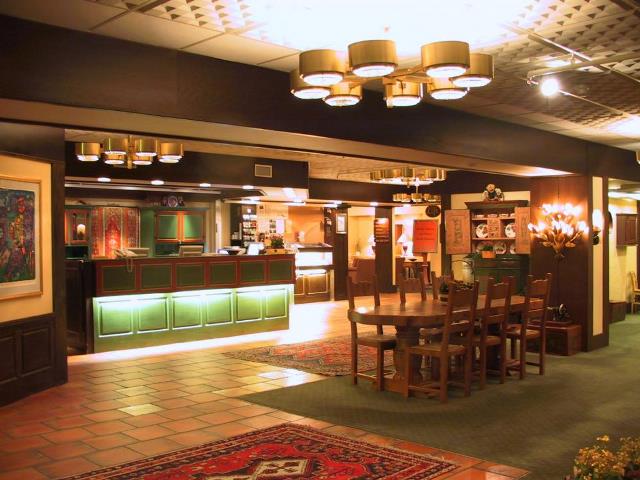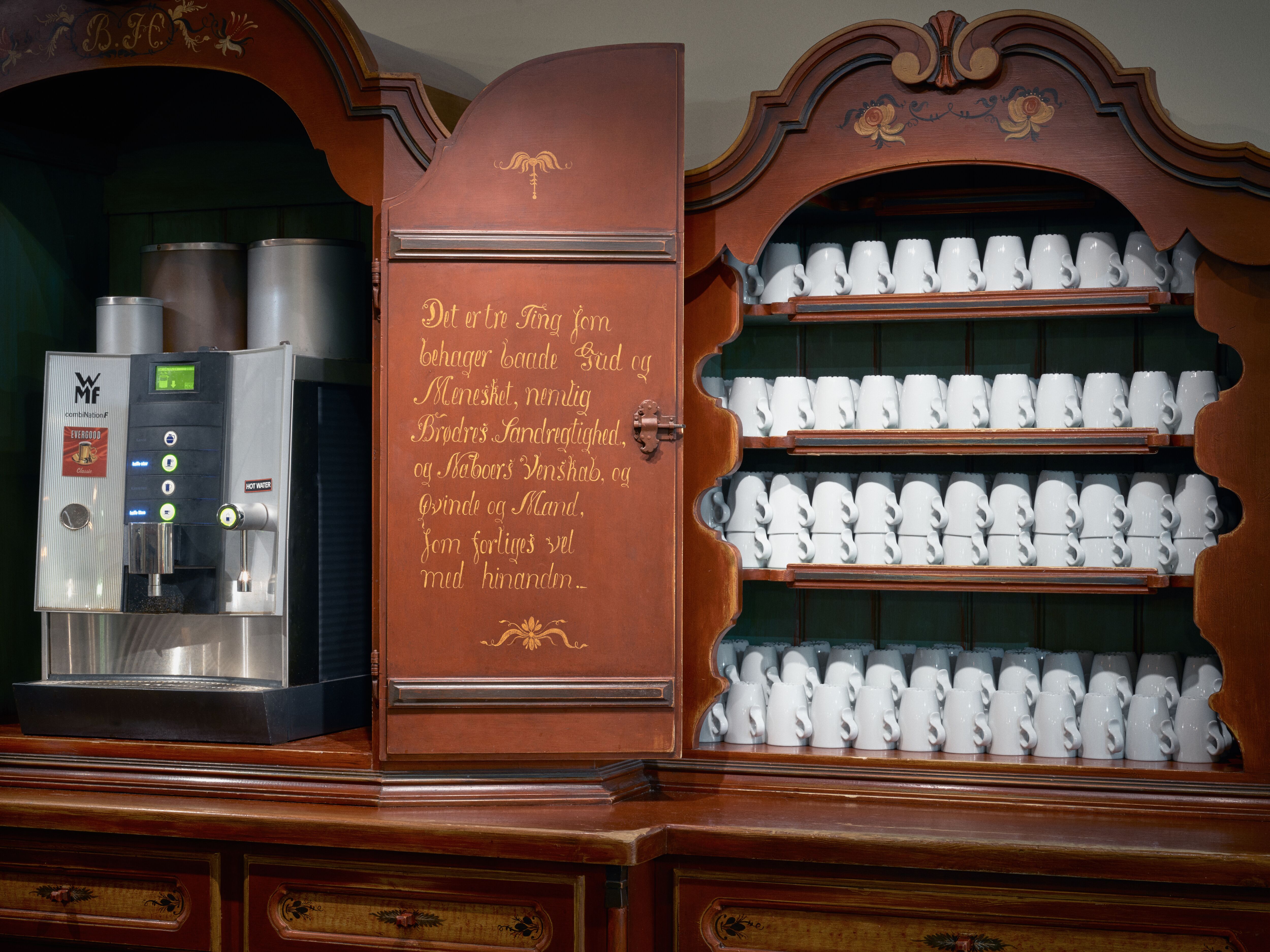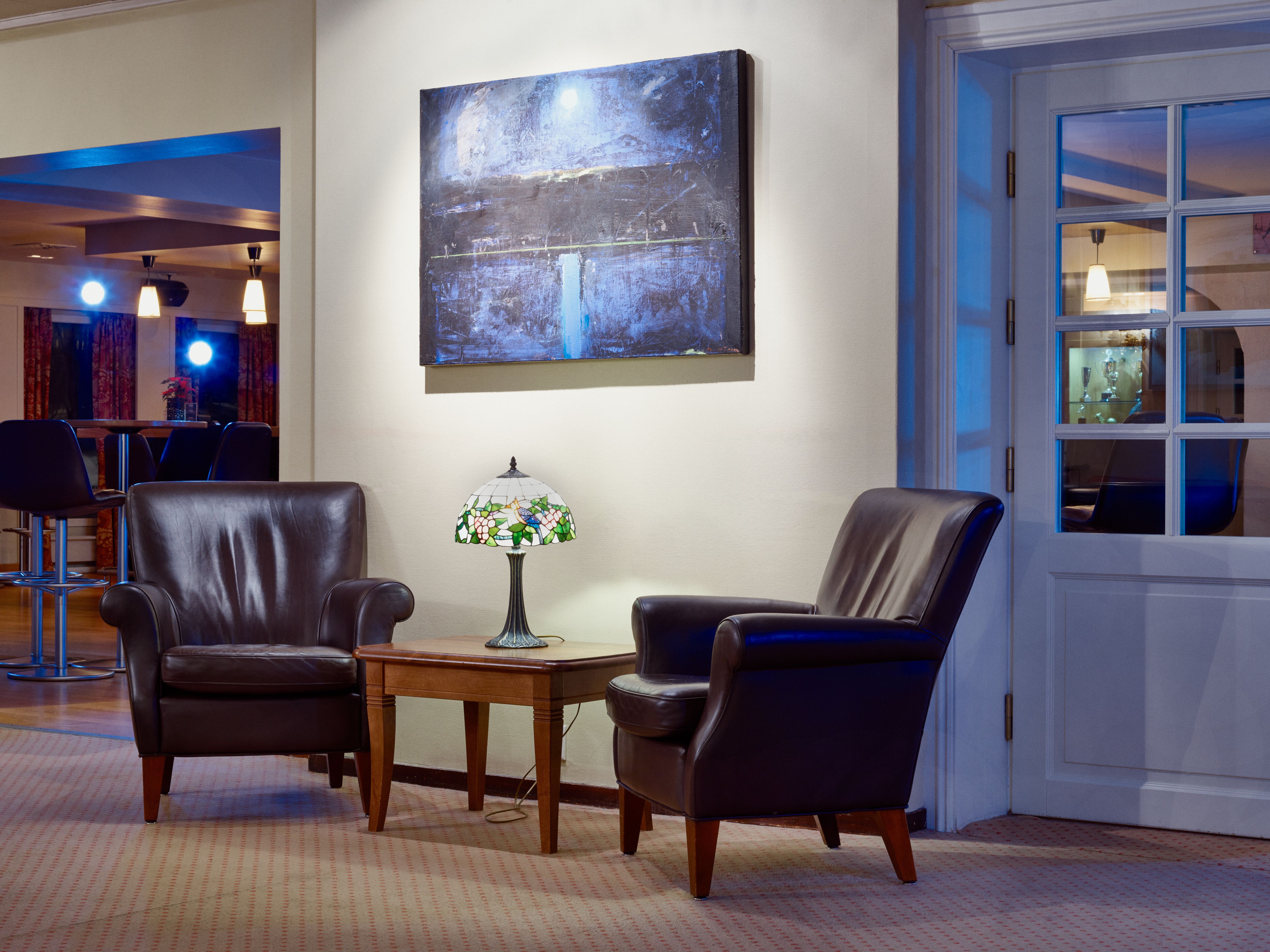 Sofias café ved receptionen serverer lette retter, international kaffemenu og hjemmebagte kager og brød fra bageriet.