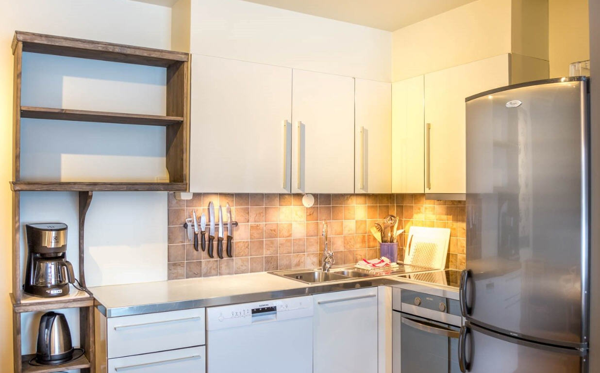 Lejlighederne har alle et åbent køkken med spiseplads og stue med TV. I stuen, mulighed for 1 opredning på sovesofa. Adgang til stor balkon/terrasse. Gratis Wi-Fi.