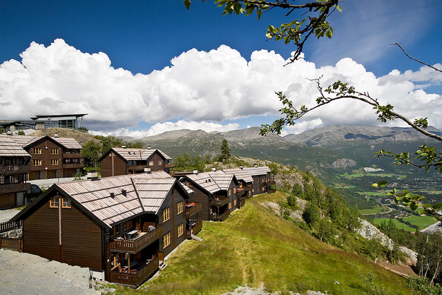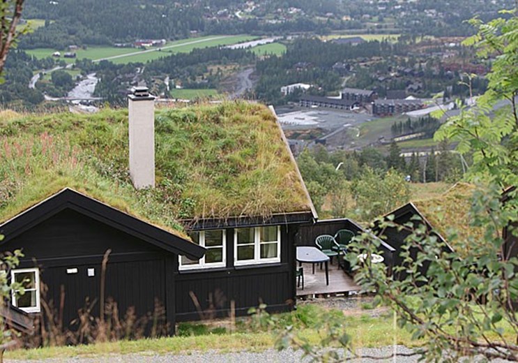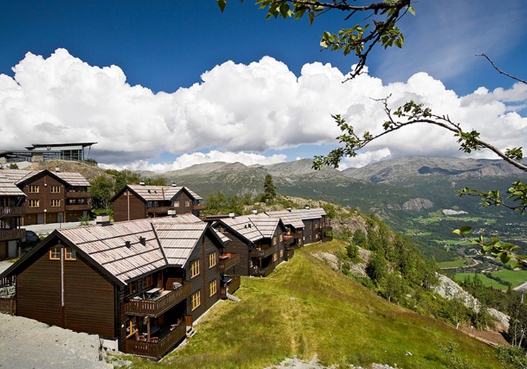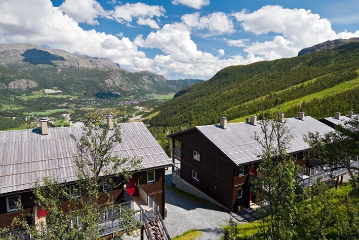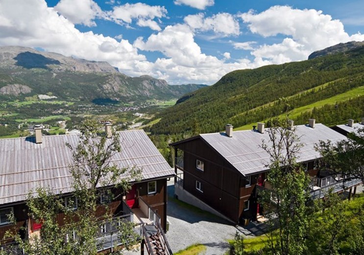 De 50 flotte hytter/dobbelthytter ligger sydvendt med udsigt over dalen og fjeldet. Hytter i 2 etager med praktisk planløsning.