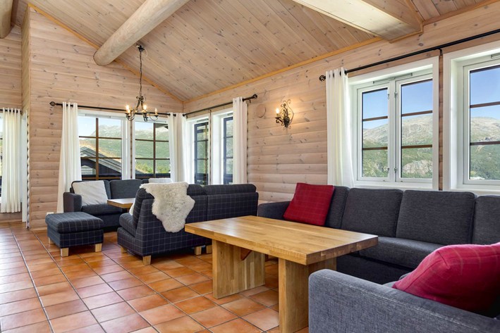 De 50 flotte hytter/dobbelthytter ligger sydvendt med udsigt over dalen og fjeldet. Hytter i 2 etager med praktisk planløsning. Åben køkken/opholdsrum, rustikke og komfortable møbler. 4 soveværelser med i alt 12 sovepladser. Stue med åben pejs, TV, stereoanlæg. Terrasse. Gulvvarme i alle rum.