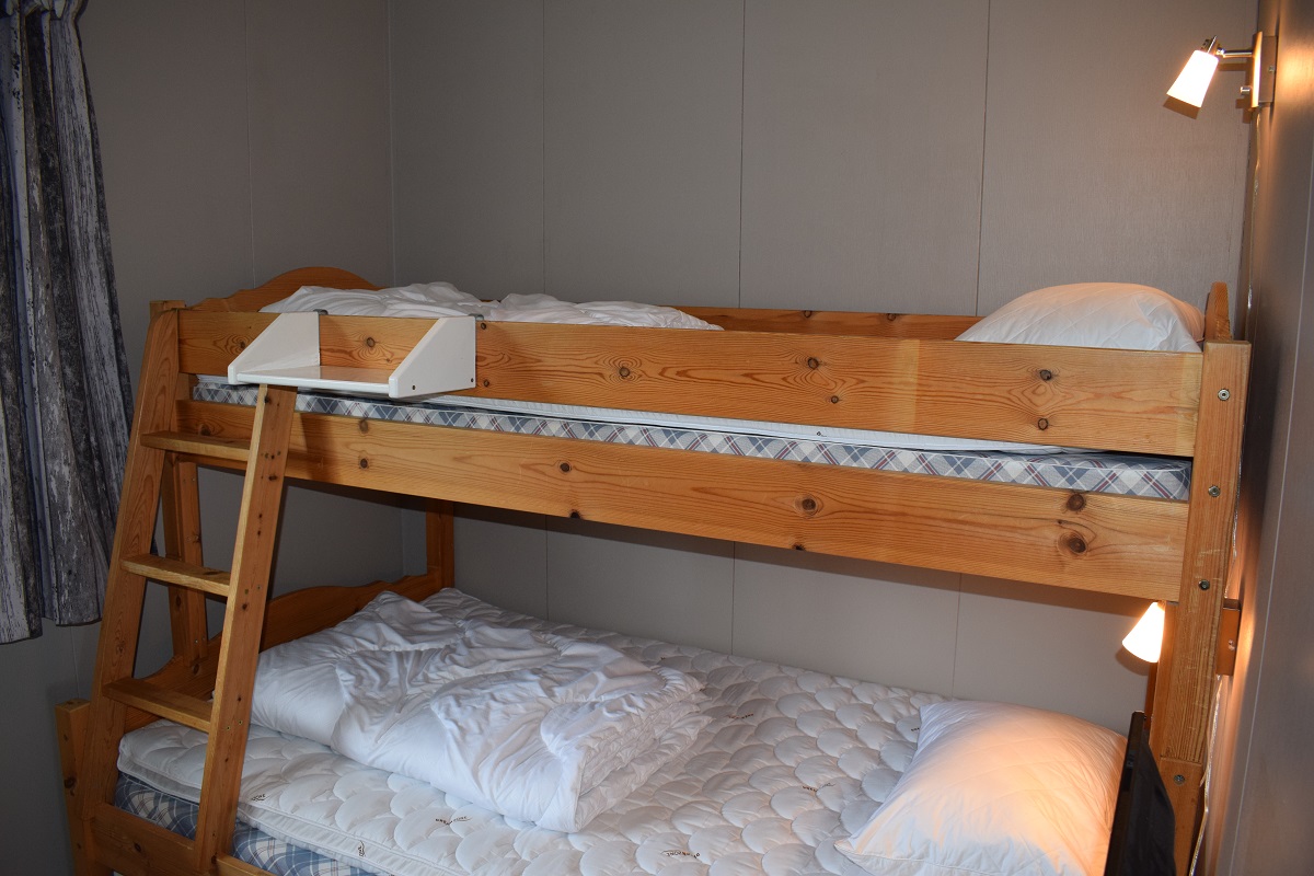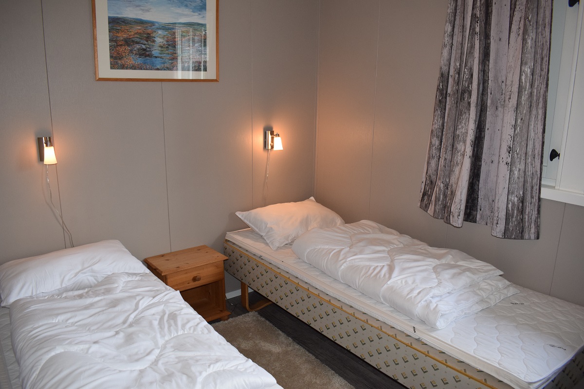 Soverum: Soverum 1: 1 dobbeltseng eller 2 enkelt senge. Soverum 2: 1 familiekøjesenge.
