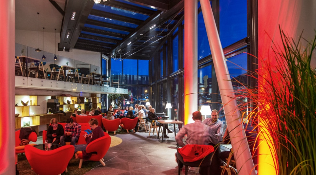 Skybar. På 11. sal er Tromsøs samlingsplads. Baren bruges til de lokales arrangementer og møder, men i weekends er baren for alle, så nyd en drink, god musik og en fantastisk udsigt.