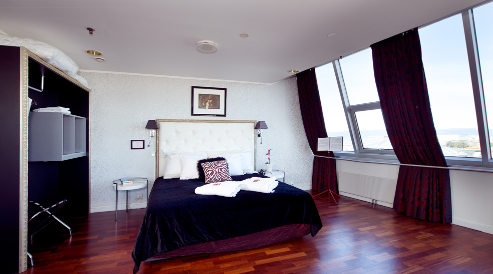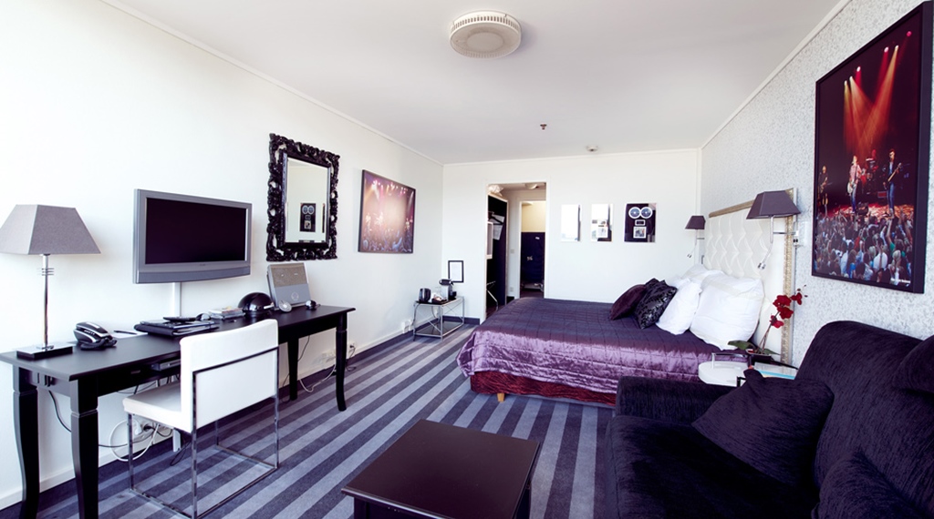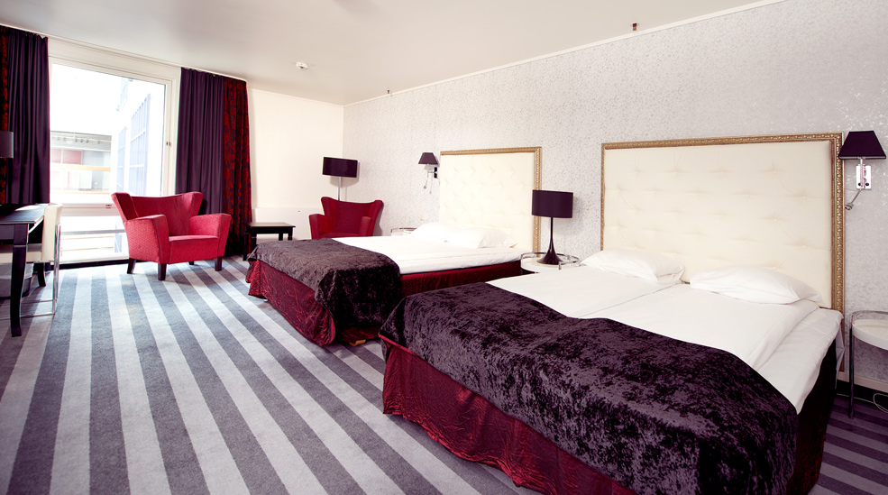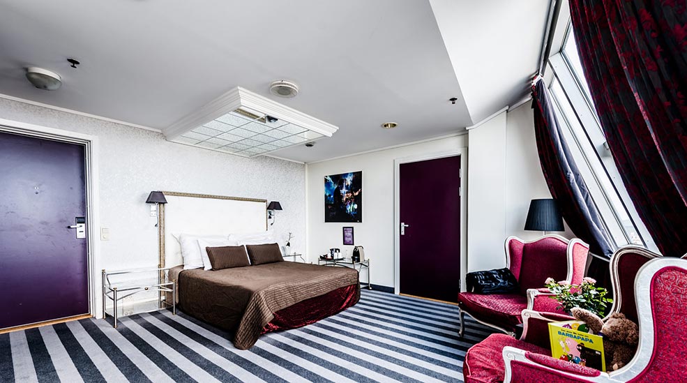 Deluxe dobbeltværelse: 25 m2, 2 personer. Stor dobbeltseng. Store rummelige værelser beliggende på øverste etage. Værelserne er indrettet efter kendte norske artister.