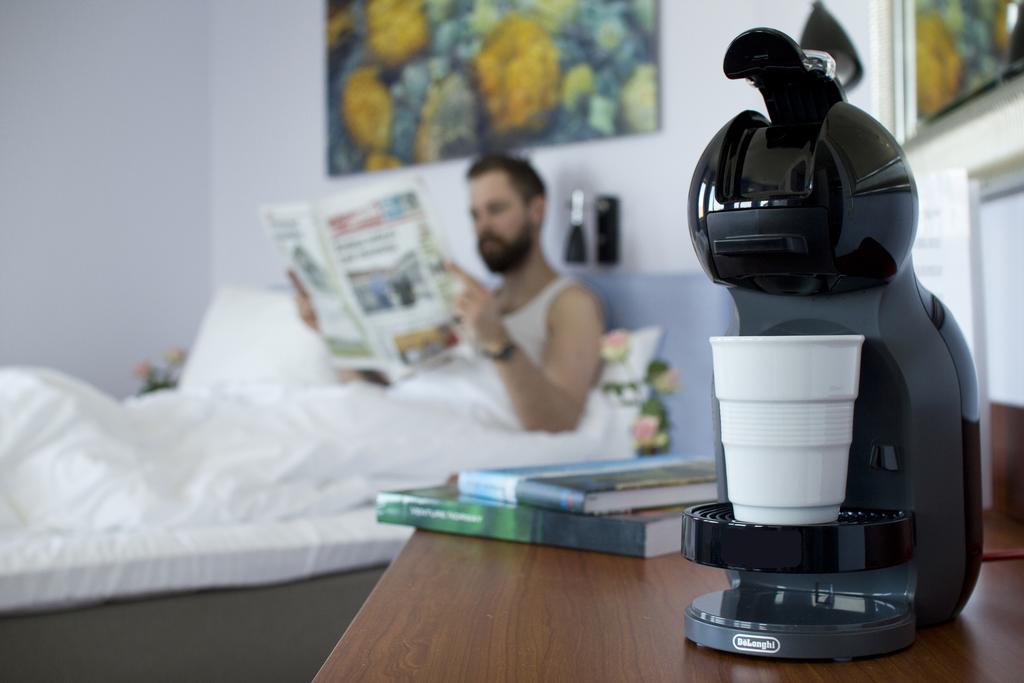 I den lille lobby, kan gæster nyde en drink, hotellet har ingen restaurant, men hjælper gerne med anbefalinger til spisesteder der ligger lige udenfor døren, uanset om det er hvalbøf, helleflynder, burger eller italiensk pizza.