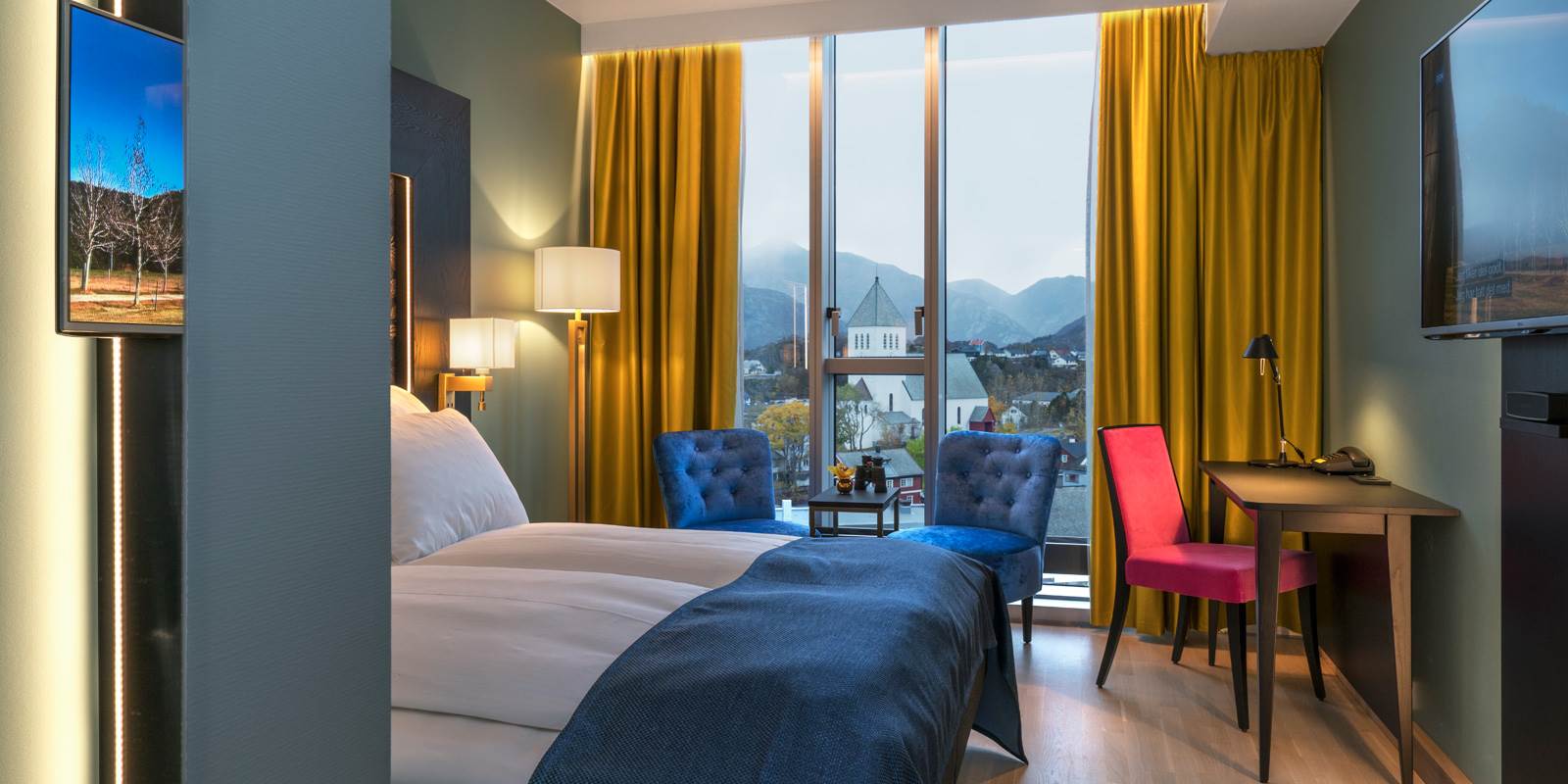161 komfortable og moderne rum med udsigt mod enten Torvet i Svolvær centrum eller mod fjorden. Bad og toilet, hårtørre. Gratis Wi-Fi. Aircondition, telefon, minibar og TV. Alle standardværelserne er allergivenlige, hvoraf mange også har parketgulv.