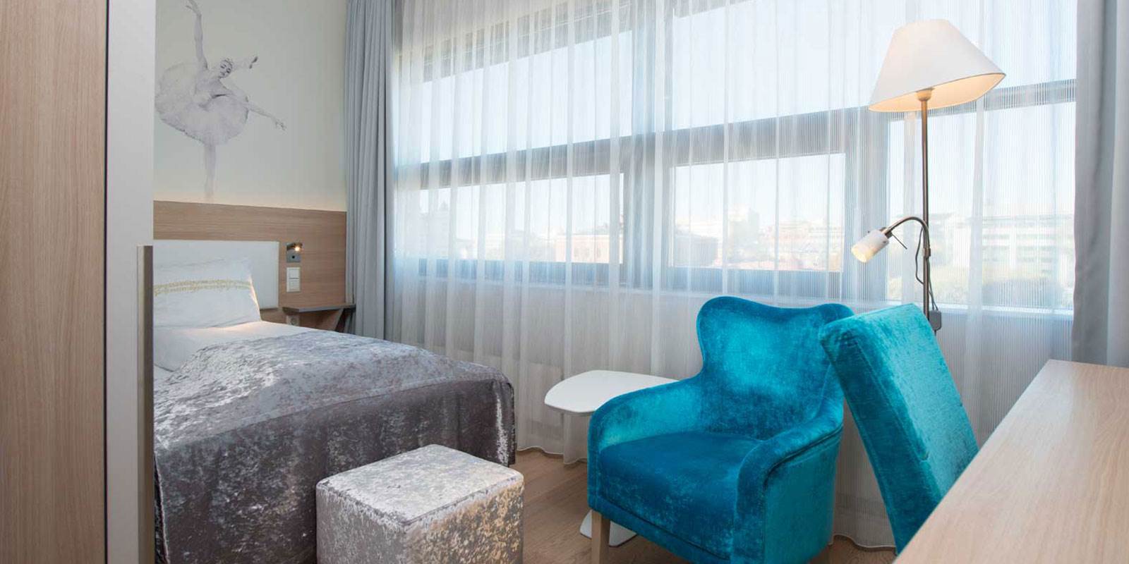 Hotellet har 480 værelser. Alle værelser har gratis WIFI. Der findes TV, telefon, minibar og mulighed til at lave kaffe og the (elkedel). Badeværelse med hårtørrer.