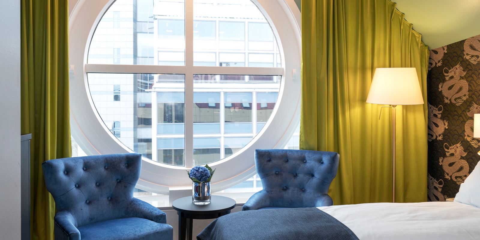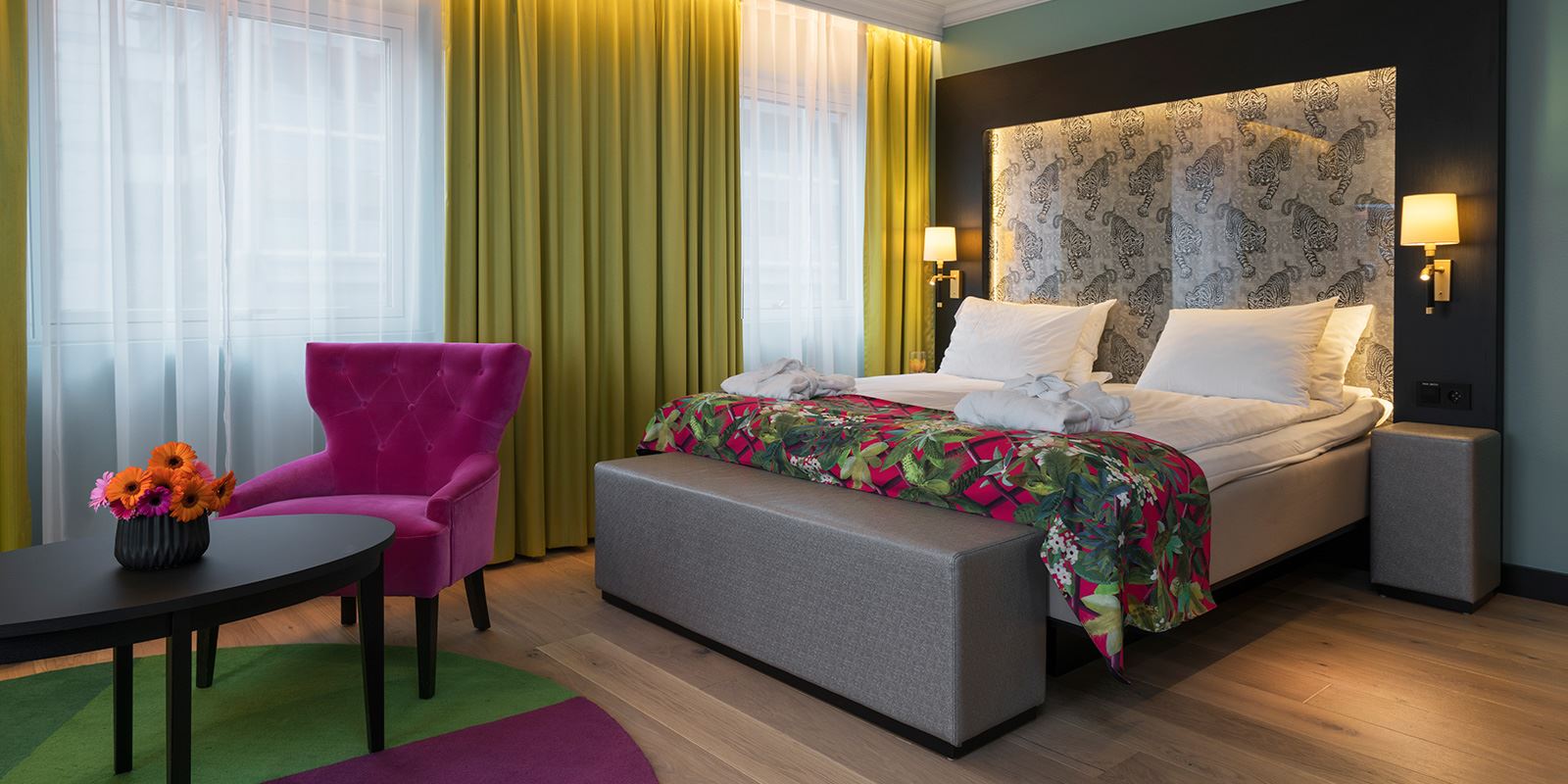 Junior Suite: 2-5 personer. Store og lyse suiter med det lille ekstra. Her er Jensen dobbeltseng, sofesofa i separat soverum og stue. Badeværelse med brus, badekåber. TV i begge rum. Nespresso-maskine, lænestole, skrivebord og stol.