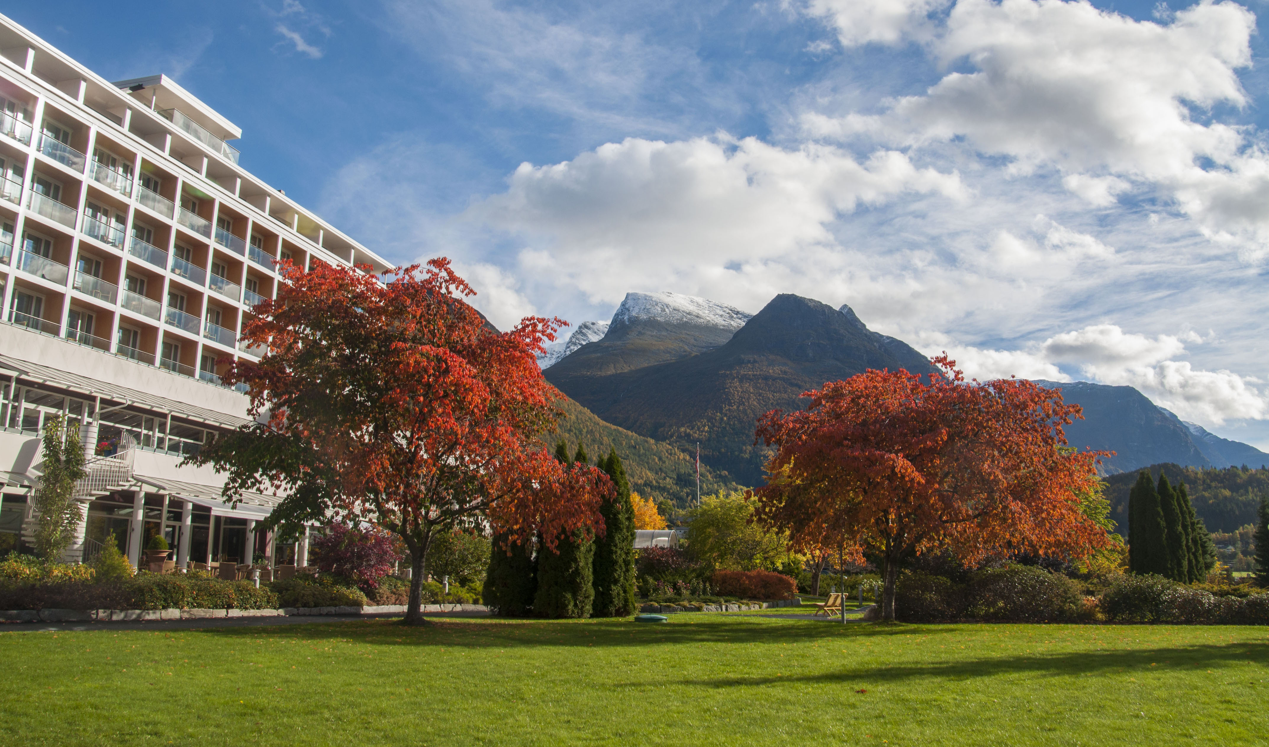 Fra Hotel Alexandra i Loen har du en majestætisk udsigt til de omkringliggende fjelde og fjorde. Dette familiedrevne hotels traditioner går tilbage til 1884 og havde på den tid plads til 20 overnatningsgæster.