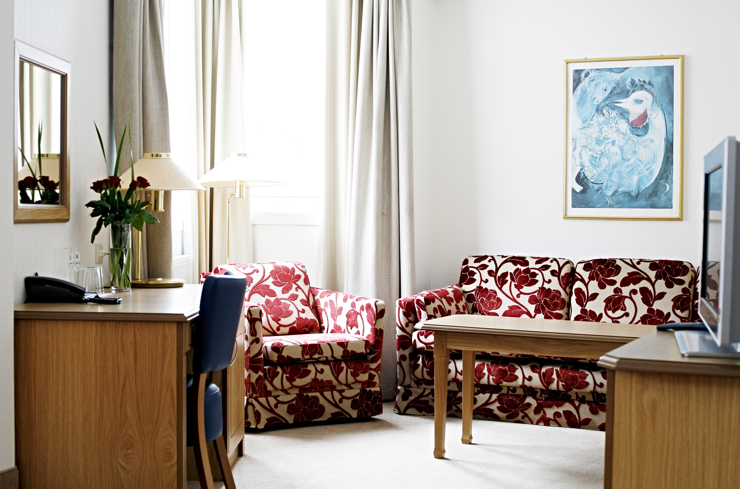 Alle værelser har TV, minibar samt eget badeværelse med bruser, hårtørrer, gratis badekåbe og tøfler. Gratis indgang til Hotellets badeanlæg, Alexandra spa. Gratis Wi-Fi på alle værelser.