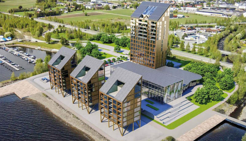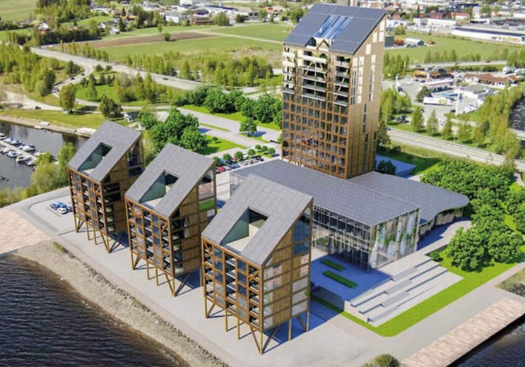 Wood Hotel, det højeste træhus i verden, ligger i Brumunddal og strækker sig 86meter over jorden. Hotellet ligger ved Mjøsa, Norges største sø, og med så mange højdemeter er udsigten upåklagelig! Verdens ældste hjuldamper DS Skibladner lægger til kaj ved hotellet om sommeren.