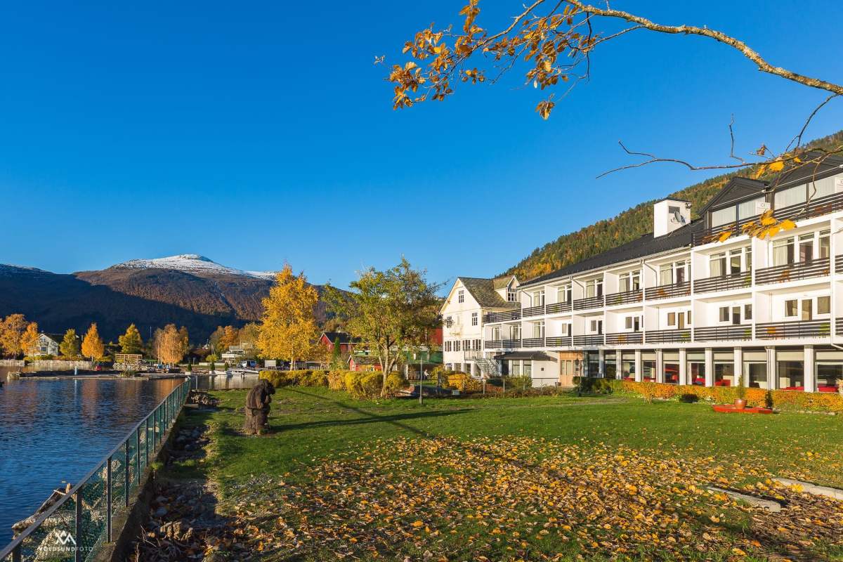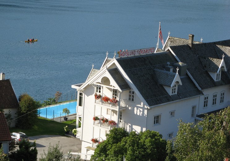 Hofslund Fjord Hotel ligger idyllisk, lige ved bredden af Sognefjorden, hvor naturen både er dramatisk og mild. Fra haven kan nydes udsigten over fjorden til de omkringliggende fjelde.