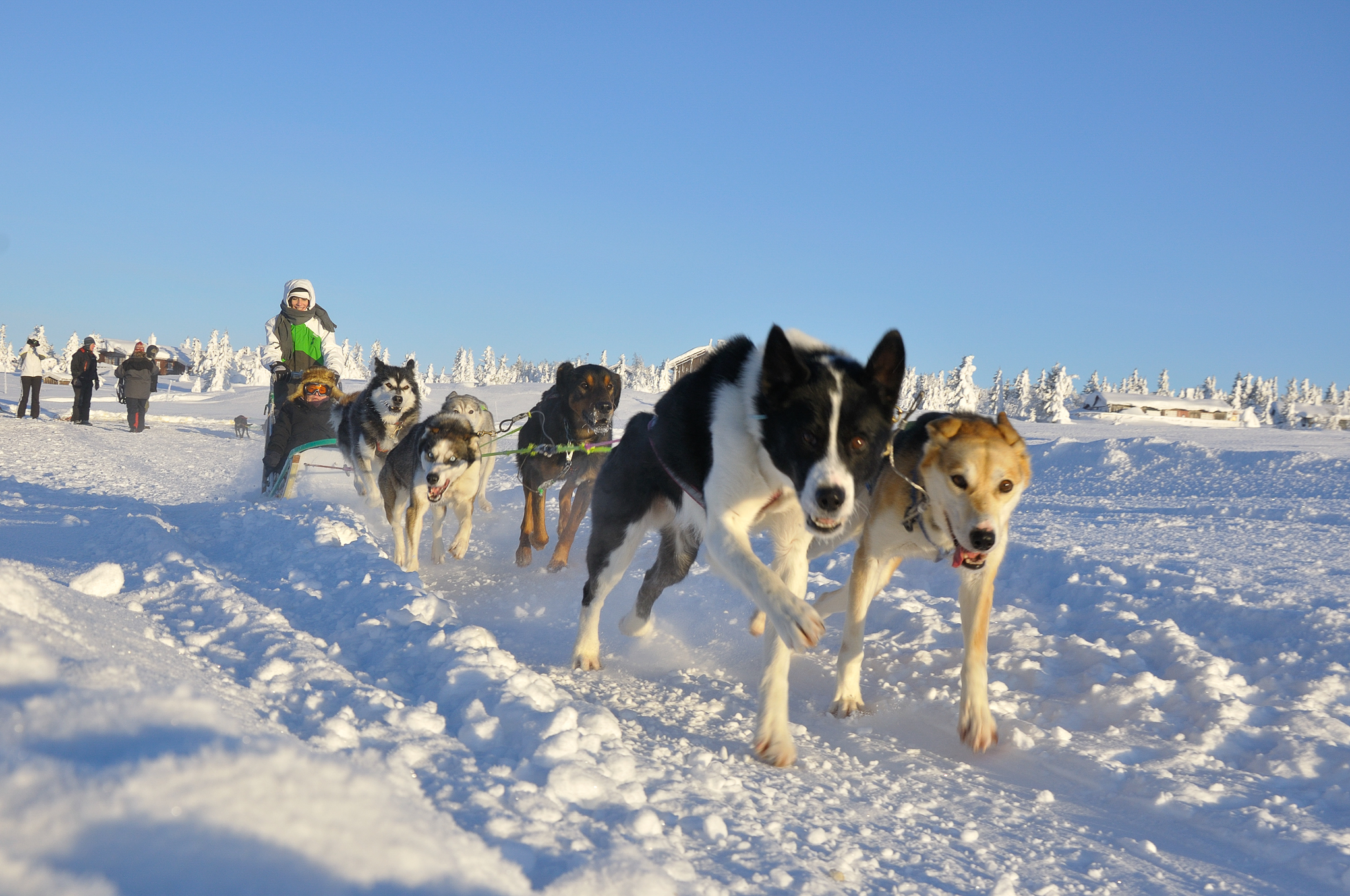 Medbring: varmt uld undertøj/skiundertøj til under heldragten, varme sokker, halsedisse, hue, skibriller/solbriller. Du kan også benytte eget vintertøj, hundene kan dog efterlade lidt snavs og poteaftryk.